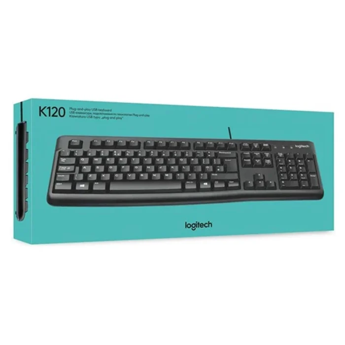 کیبورد لاجیتک Logitech مدل K120 یک کیبورد باسیم ساده، مقاوم و مقرون‌به‌صرفه است که برای کاربری روزانه در محیط‌های اداری و خانگی طراحی شده است. این کیبورد با طراحی استاندارد و کلیدهای نرم و کم‌صدا، تجربه تایپ راحت و دقیقی را در اختیار کاربران قرار می‌دهد. اتصال از طریق کابل USB باعث می‌شود همیشه آماده به کار باشد، بدون نیاز به باتری یا شارژ.