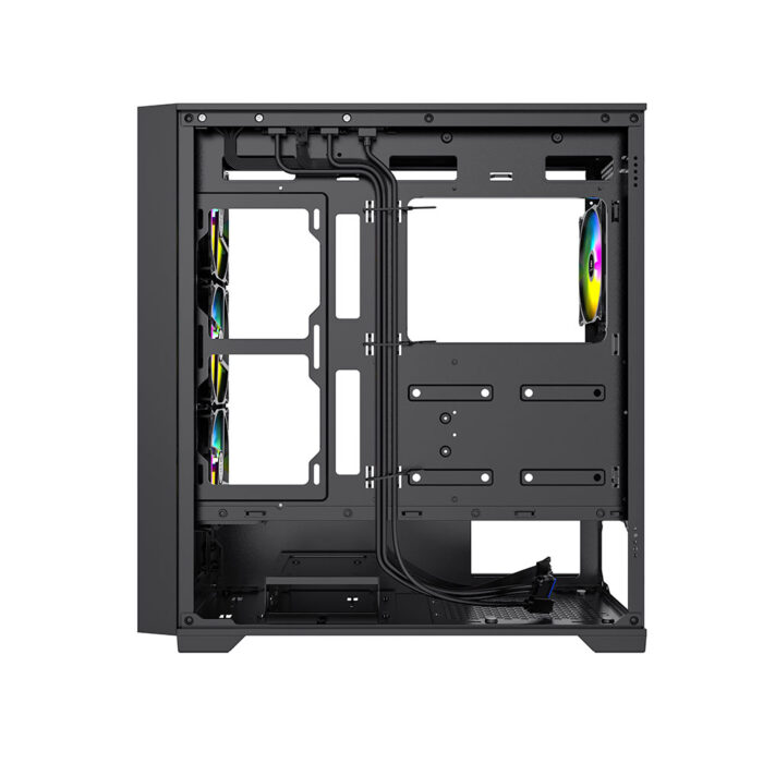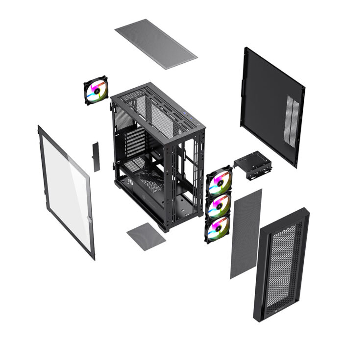 بدنه مشکی مات با پنل شفاف کناری برای نمایش نورپردازی RGB و قطعات داخلی