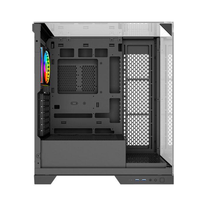 این کیس فضای کافی برای نصب کارتهای گرافیک با طول زیاد، خنککنندههای پردازنده با ارتفاع بالا و چندین درایو ذخیرهسازی را فراهم میکند. ساختار داخلی آن به گونهای است که کابلکشی به صورت منظم و مخفی انجام میشود و ظاهر داخلی کیس همیشه مرتب باقی میماند.